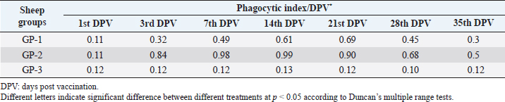 Table 4. Mean concentration of IL-6 (ng/ml) in vaccinated sheep.