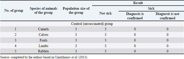 AbstractBackground: The annual increase in the number of camels entails a parallel increase in the incidence of trichophytosis, which poses a great threat to the health and life of both this species of animals and other organisms that contact and surround them. Aim: The aim of the study was to develop and establish the quality of vaccines inactivated by ultrasonic exposure for the prevention and treatment of trichophytosis in camels, and to compare them with chemically deactivated vaccines. Methods: The peculiarity of the technology of production of these vaccines was the use of an innovative method of inactivation of fungal strains by ultrasonic waves, which allowed to achieve high positive results in theory, and was subsequently confirmed in practice by immunizing sick and healthy animals. The first tests of the obtained vaccines were conducted in laboratory conditions on experimental rabbits. Results: The results of prophylactic and therapeutic vaccinations were one hundred percent positive, which made it possible to conduct further tests directly on camels of industrial farms, the expected result of which was also positively confirmed at the end of the research. Conclusion: As a result of this experiment, the effectiveness, stability, and safety of the manufactured vaccines were established, which made it possible to approve the regulatory and technical documentation and patent them as an innovative and effective development for the prevention and treatment of camel trichophytosis, which will reduce the growth of infection and further overcome the mass spread of the disease both among camels and among the surrounding organisms to which it is transmitted. Keywords: Monovaccine, Pentavalent vaccine, Trichophytosis, Trichophyton, Strain. IntroductionDermatomycoses is a group of diseases caused by pathogens—deuteromycetes (dermatophytes), which in turn are divided into three genera: Trichophyton—causing the disease known as trichomycosis (-phythia, -phytosis, ringworm); Microsporum—leading to microsporia (microsporosis) and Achorion—the clinical manifestation of which is favus (scabies). The most common cause of the lesion is Trichophyton. Among the different species, Trichophyton verrucosum and Trichophyton faviforme affect cattle and horses, whereas Trichophyton equinum and Trichophyton mentagrophytes (rarely) affect horses. On the other hand, carnivores (cats and dogs) and pigs are mostly affected by Trichophyton gypseum and T. mentagrophytes, while other species that are similar in morphology are detected much less frequently. However, the impact of the latter should not be underestimated, and it is important to pay attention to them, looking for methods of their suppression (Klymnyuk et al., 2004; Skibitskyi et al., 2012; Mohammadpour et al., 2020). According to the latest data, there are about 338,000 camels in the Republic of Kazakhstan, most of which are in Mangistau (41,500), Atyrau (17,300) and South Kazakhstan (16,900) regions. In addition to the number, there is also a great species diversity: compared to other countries of the world, where only two species of camels are common, in Kazakhstan there are about 32 existing hybrid species, which is due to two factors: firstly, the growing demand for camel milk, which is fermented to obtain the drink shubat and secondly, the fact that keeping camels in both large and small quantities is economically profitable for both small entrepreneurs and the country as a whole (Shoman, 2019). The complexity of the disease lies in the fact that the pathogen is easily transmitted by contact of a healthy animal with a sick one, and therefore the scale of spread is quite fast and large (Mel’nychuk and Hryshchenko, 2014; Yespembetov et al., 2019). There are two types of measures for combating camel trichophytosis: preventive measures and treatment measures. Preventive measures include sanitary and hygienic measures, climatic measures, and ecotrophological measures that ensure environmentally safe and rational nutrition. These measures are necessary because the causative agents of dermatomycoses are highly stable outside the body and can be transferred through various means, such as air, dust, water, household items, soil, and manure. However, these preventive measures do not guarantee full protection against infection with the pathogen. As a result, there is a threat of further spread of the disease, especially among young animals who are more sensitive to the disease and may experience a follicular or deep course of the disease (Gryshchenko and Lytvynenko, 2007; Vashchyk et al., 2020). In addition, preventive measures may not be effective during cold seasons when there is no solar radiation. The economic losses of the livestock sector due to this disease are also significant, not only in terms of animal mortality but also in terms of reduced growth, development, and productivity. On the other hand, treatment measures are needed to address the disease once it has occurred. Similarly, treatment, which is most often conducted by the use of antibiotics internally, does not always help in the treatment of pathogenic fungi with high contagiousness (Saiduldin, 2009; Levinson, 2014; Parker et al., 2021; Vakhidova, 2021; McVey et al., 2022). Although the issue of external treatment of trichophytosis in animals has been more or less solved by the use of ointments and solutions for the treatment of dermatomycotic skin lesions, as well as disinfectants to prevent the disease (Romich and Wagner, 2020; Mohamed et al., 2022). However, the annually increasing number of camels further complicates the situation and requires urgent attention and action, in the form of the creation and production of a safe and effective vaccine as the most effective way to combat trichophytosis, which is being worked on by scientists in Kazakhstan and other countries of the world, and which is also the purpose of this study. The aim of the study was to develop and establis