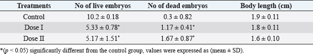 Table 4. Effect of different doses of DM on embryos of untreated females mated with treated males.