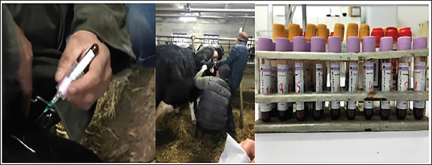 Fig. 4. Blood sampling for biochemical research. Table 1. Results of the study of milk samples from cows using various diagnostic tests (n=60).