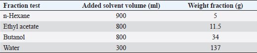 Table 3. Fractionation results graded extract methanol fruit S. cumini L.