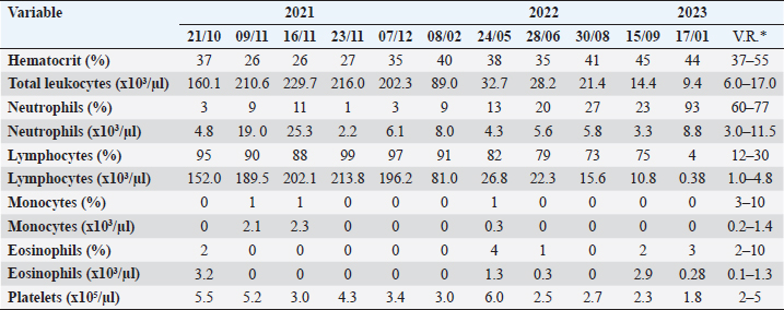Table 2. Blood tests performed to monitor a Golden Retriever patient diagnosed with T-zone lymphoma.
