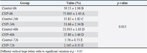 Table 3. CNP addition effect on sperms live percentage of ram sperms during three days of cooling preservation.