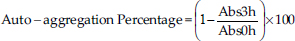 where Abs3 hours represents the absorbance at 650 nm after 3 hours of incubation, and Abs0h represents the absorbance at 650 nm at the start of incubation (0 hour) (Tuo et al., 2013). Co-aggregation assayThe selected bacteria were cultured in MRS broth and incubated at 37°C under microaerophilic conditions for 20 hours. In addition, an aliquot of Salmonella sp. was cultured in TSB broth (Difco, USA) and incubated at 37°C for 20 hours. Suspensions of lactic acid bacteria and Salmonella sp. were prepared in PBS 1× as described in the auto-aggregation assay, considering an OD650 of 0.29 ± 0.05 for Salmonella sp. Subsequently, 1 ml of the suspension of each evaluated bacterium was mixed with 1 ml of Salmonella sp. suspended in PBS 1×. The mixture underwent vortex agitation and was incubated at 37°C for 3 hours. The absorbance was then measured at 650 nm. The percentage of co-aggregation was calculated as follows: