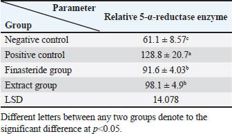Table 5. Effect of flaxseed ethanolic extract, finasteride on level of 5-α-reductase enzyme in serum.
