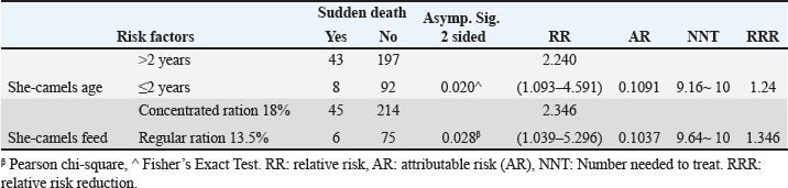 Table 3. The association between sudden death and different risk factors in the examined she-camels.