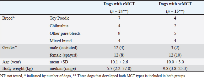 Table 1. Signalments of dogs with cMCT and scMCT in study-1.