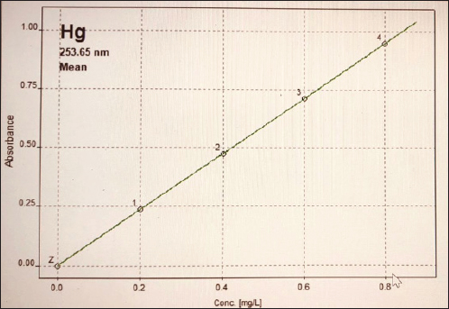 Fig. 3. Hg calibration curve. Table 1. Heavy metals concentration in liver of C. carpio (ppm). Values are expressed as mean ± SE.