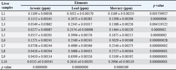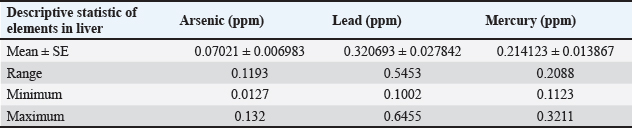 Table 2. Mean ± SE, range, minimum, and maximum value of heavy metal content in liver samples of C. carpio.