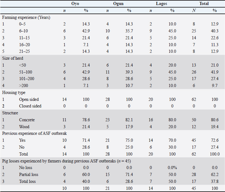Table 2. Field experience of farmers and production practices on ASF-affected farms.