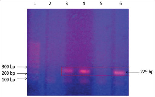 Fig. 5. Polymerase chain reaction on camel fecal samples using Mycobacterium avium subsp. paratuberculosis-specific primers. Lane 1: 100 bp DNA size ladder, lane 2: negative test control (no DNA template), lanes 3 and 4: DNA extracted from fecal samples and lymph nodes, lane 5: DNA extracted from fecal samples of controls, and lane 6: control positive: DNA from a Mycobacterium avium subsp. paratuberculosis isolate. Positive results are indicated by obtaining a 229-bp product. Therapeutic and control trialsAl-Swailem et al. (2011) conducted a trial for the treatment of PTB in dromedary camels through intramuscular injection of rifampin (5 mg/kg BW) and streptomycin (5 mg/kg BW) into seven diseased animals for 10 weeks, where three diseased camels left without treatment and kept as positive controls. Diarrhea disappeared 1 week after therapy, and the animals began to acquire vitality. Improvement in body condition was detected after 3 weeks of treatment. Mycobacterium avium subsp. paratuberculosis disappeared from rectal scraping 5–9 weeks after rifampin and streptomycin therapy, while the untreated camels remained passing MAP in feces until the end of the experiment. The treated camels remained free of MAP excretion until the end of the 10th week, thus indicating good sensitivity of rifampin and streptomycin against MAP. In a study conducted by Elmoslemany et al., (2022), it was reported that the herd size affects the seropositivity of PTB where a greater risk seropositivity was found if the herd is larger than 75 animals. Moreover, seropositivity of MAP decreased in groups with calving pens versus herds without. The latter report also pointed out that the risk of MAP seroprevalence decreased in older camels. Camel breeds used for beauty shows and racing are reported to increase the risk of transmission of MAP as these animals travel regularly across different areas (Al Naeem et al., 2024). The seropositivity of PTB was also reported in camels to increase with age, with the highest prevalence in camels over 10 years of age. Medium- and large-sized herds where animals were kept as single species and confined were found more likely to test positive (Hussain et al., 2015). Selim et al., (2022) stated that MAP risk for infection in camels increases in elderly animals especially those over 10 years; however, sex, geographical location, and contact with cattle did not affect the MAP seroprevalence in camels. The control of PTB is also attempted in farm animals through vaccination programs (Patton, 2011; Davis et al., 2021; Juste et al., 2021; Lianou et al., 2022). However, in camels, no reports of vaccination against PTB were found in veterinary literature. In conclusion, PTB is a fatal life-threatening, grave prognostic, and possible zoonotic disease in dromedary camels. Up until now, no effective cure methods have been documented for the treatment of such global disease. Therefore, early detection and eradication procedures should be implemented for the control and prevention of such diseases in dromedary camels. Initially, camels suspected to be infected with PTB should be clinically evaluated such as scanning by abdominal sonography and directly must be isolated if intestinal sonography results point to infection by PTB until confirmatory laboratory results such as ELISA or PCR arrive. Finally, more research should be directed toward vaccination programs worldwide, especially in food-producing animals including dromedary camels. AcknowledgmentsNone. Conflict of interestThe authors declare that there is no conflict of interest. FundingThis research received no specific grant. Author contributionMT: conceptualization, data collection, and writing the original manuscript draft. HA: sharing in writing of manuscript draft and editing. AA: review and editing. All authors approved the final manuscript for publication. Data availabilityAll data supporting the findings of this study are available within the manuscript and no additional data sources are required. References Al Naeem, A., Salem, M., Housawi, F., Al-Mohammed Salem, K., Hussen, J., Fayez, M., Zaghawa, A. and Kostoulas P. 2024. Epidemiological insights into paratuberculosis in camels in Saudi Arabia: Bayesian estimation of true prevalence and identification of risk factors. PLoS One 19, e0299881. Alharbi, K.B., Al-Swailem, A., Al-Dubaib, M.A., Al-Yamani, E., Al-Naeem, A., Shehata, M., Hashad, M.E., Albusadah, K.A. and Mahmoud, O.M. 2012. Pathology and molecular diagnosis of paratuberculosis of camels. Trop. Anim. Health Prod. 44, 173–177. Al-Swailem, A., Al-Dubaib, M.A., Abo El-Hassan, D.G., Tharwat, M., Al-Yamani, E., Shehata, M., Hashad, M. and Mahmoud, O.M. 2011. Treatment of paratuberculosis in camels by rifampin and streptomycin. J. Camel Pract. Res. 18, 225–229. Alluwaimi, A.M. 2015. Paratuberculosis infection in camel (Camelus dromidarius): current and prospective overview. Open J. Vet. Med. 5, 153–160. Behr, M.A. and Kapur, V. 2008. The evidence for Mycobacterium paratuberculosis in Crohn’s disease. Curr. Opin. Gastroenterol. 24, 17–21. Camanes, G., Joly, A., Fourichon, C., Ben Romdhane, R. and Ezanno, P. 2018. Control measures to prevent the increase of paratuberculosis prevalence in dairy cattle herds: an individual-based modelling approach. Vet. Res. 49, 60. Chaubey, K.K., Gupta, R.D., Gupta, S., Singh, S.V., Bhatia, A.K., Jayaraman, S., Kumar, N., Goel, A., Rathore, A.S., Sahzad, Sohal, J.S., Stephen, B.J., Singh, M., Goyal, M., Dhama, K. and Derakhshandeh A. 2016. Trends and advances in the diagnosis and control of paratuberculosis in domestic livestock. Vet. Q. 2016 36, 203–227. Corbett, C.S., de Jong, M.C.M., Orsel, K., De Buck, J. and Barkema, H.W. 2019. Quantifying transmission of Mycobacterium avium subsp. paratuberculosis among group-housed dairy calves. Vet. Res. 50, 60. Corneli, S., Di Paolo, A., Vitale, N., Torricelli, M., Petrucci, L., Sebastiani, C., Ciullo, M., Curcio, L., Biagetti, M., Papa, P., Co