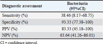 Table 3. Diagnostic assessment of bacteriuria by microscopic examination of urine sediment compared with urine bacterial culture results.