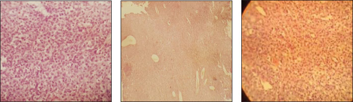 Fig. 5. The cells exhibit moderate amounts of pale eosinophilic cytoplasm and centrally to eccentrically located round to oval nuclei with finely stippled chromatin and indistinct nucleoli. DiscussionThis case report highlights the importance of a comprehensive diagnostic approach for an extended, cutaneous histiocytoma. The combination of cytologic, radiologic, and pathologic investigations allowed for an accurate diagnosis of the tumor and its invasion. Early recognition and treatment can improve outcomes for affected animals. Cutaneous histiocytoma is a rare neoplasm that accounts for only 0.3% of all canine skin tumors (Perez-Alenza, 2016; Hohenhaus et al., 2016). The clinical presentation of this case was consistent with that of previous studies, with a rapid growth pattern and painless development (Moore, 2015). The cytologic and pathologic features were also consistent with the diagnosis of histiocytoma. Surgical excision is usually recommended as the primary treatment modality due to the tumor's benign behavior and lack of evidence of metastasis (Vail DM Thamm and Liptak, 2019). In this case, cause of tumor invasion into the maxillary bone, nasal sinus destruction, orbital pressure, ocular discharge, and visual problems, surgical intervention was extremely recommended and radically performed. Several studies have reported cases of cutaneous histiocytoma in dogs, with a predilection in young animals and a benign clinical course. Treatment typically involves surgical excision, although spontaneous regression has been reported in some cases (Palus et al., 2014). The authors believe that any manipulation of the histiocytoma could accelerate tumor development and growth. This case had two time manipulations before surgery, and each manipulation changed most mass. Histopathologic examination of the excised tumor confirmed the presence of histiocytic cells with distinct cytoplasmic features, further supporting the diagnosis of cutaneous histiocytoma. ConclusionOverall, this case report of a massive cutaneous histiocytoma in a 12-year-old intact female dog highlights the importance of considering this benign tumor in the differential diagnosis of cutaneous masses in dogs. Further research is needed to better understand the underlying pathogenesis and behavior of histiocytoma in dogs. The authors believe that although the cutaneous histiocytoma is benign, the distance of the skin to underneath structures could be affected, thereby endangering the prognosis of treatment. AcknowledgmentsThe authors thank Dr. Hassanzadeh Specialized Veterinary Hospital for their kind support. Conflict of interestThe authors declare that they have no conflicts of interest. All data relevant to the study are included in the article. FundingThere was no specific grant for this research from any funding agency in the public, commercial, or not-for-profit sectors. Author’s contributionRN: draft editing, manuscript writing, surgical procedures, methodology, investigation, supervision, data curation. MNN: formal analysis, investigation, software, data curation. AAT: validation, review, editing, visualization. SS: writing, supervision, resources, and conceptualization. MAM: methodology, data curation, software. MR: visualization, validation, investigation, writing draft, resources. MT: validation, review and editing, visualization. AA: formal analysis, investigation, software, data curation. Data availabilityThe authors have no conflict with data availability. The authors have nothing to disclose. No AI-assisted technologies were used in the generation of this manuscript. ReferencesBenaduce Emanuelli Mello, C., Engelmann, A.M., Kommers, G.D., Martins Flores, M., Almeida Fighera, R., Rodrigues E Rodrigues, B., Ceolin Lamego, E., Bagolin Da Silva, C., Bueno, A. and Melazzo De Andrade, C. 2023. Fine needle aspiration cytology: high accuracy in diagnosing cutaneous and subcutaneous neoplasms in dogs. Comp. Clin. Pathol. 32(1), 155–164. Costa, D., Ferreira, R., Prada, J., Queiroga, F.L., Rodrigues, P., Silva, F. and Pires, I. 2020. A role for angiogenesis in canine cutaneous histiocytoma regression: insights into an old clinical enigma. Vivo 34, 3279–3284. García-Reynoso, I.C., Flores-Dueñas, C.A., Castro-del Campo, N., Jácome-Ibarra, M., Herrera-Ramírez, J.C., Gómez-Gómez, S.D., Rodríguez-Gaxiola, M.A. and Gaxiola-Camacho, S.M. 2025. Risk factors for the occurrence of cutaneous neoplasms in dogs: a retrospective study by cytology reports, 2019–2021. Animals 14(15), 2069. Goldschmidt, M.H. and Goldschmidt, K.H. 2018. Canine and feline skin tumors: a review. J. Vet. Dermatol. 29(2), 139–151. Goldstein, R.E., Stoyanov, M.A., Hargis, J.D., Temin, C.W. and DeBey, A.L. 2020. Clinical features and diagnostic imaging findings in dogs with cutaneous histiocytoma: a retrospective study of 54 cases. J. Vet. Inter. Med. 34(3), 847–854. Gualtieri, M., Marogna, G. and Vannozzi, I. 2018. Cutaneous histiocytoma in dogs: a retrospective study of 20 cases. J. Vet. Dermatol. 28(3), 246–253. Hohenhaus, A.E., Kelsey, J.L., Haddad, J., Barber, L., Palmisano, M., Farrelly, J. and Soucy, A. 2016. Canine cutaneous and subcutaneous soft tissue sarcoma: an evidence-based review of case management. J. Am. Anim. Hosp. Assoc. 52(2), 77 -89. Jeong Y.K., Lee, K.C. and Lee, H.B. 2020. CT findings in canine cutaneous histiocytoma: a study of 20 cases. J. Vet. Med. Sci. 82(6), 931–938. Kalosy, K.S., Keating, M.K., Rosenkrantz, W.S. and Moore, P.F. 2025. retrospective evaluation of clonality in canine erythema multiforme. Vet. Dermatol. 1–11. Mariani, C.L., Jennings, M.K., Olby, N.J., Borst, L.B., Brown Jr, J.C., Robertson, I.D., Seiler, G.S. and MacKillop, E. 2015. Histiocytic sarcoma with central nervous system involvement in dogs: 19 cases. J. Vet. Int. Med. 29(2), 607–613. McCue, D.A., Sibley, J.A., Schleis, S.E. and Kiupel, M. 2019. Canine cutaneous histiocytoma: a retrospective study of 114 cases. J. Vet. Inter. Med. 33(4)