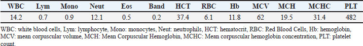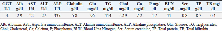 AbstractBackground: Facial masses in dogs can arise from infections, inflammation, or tumors. Histiocytoma, a common benign skin tumor in young dogs, originates from Langerhans cells. It appears as a small, round, hairless, and rapidly growing lump, present on the face or ears. Typically, histiocytomas regress spontaneously within a few months. While usually harmless, biopsy and monitoring are recommended to rule out malignancies like mast cell tumors or squamous cell carcinoma. Case Description: A 12-year-old, unspayed bitch presented with a huge histiocytoma on her frontonasal bone. The mass measured about ten centimeters across and had suddenly become bigger over the last few months. Microscopic examination of fine needle aspirates showed that there was proliferation of tumor cells composed of two cell types resembling neoplastic macrophages and dendritic cells, which corresponds to cutaneous histiocytoma confirmed by Hematoxylin–Eosin stain. Radiographic images also demonstrated a large subcutaneous mass with no evidence of lymph node metastasis. Removal of the growth through surgical excision was done, and the tissue sample submitted for histopathology showed a typical pattern of macrophage and dendritic cell proliferation without any signs suggesting malignancy. Enbloc excision resulted in an intact dog after six months post-surgery check with no evidence of clinical recurrence or relapse. Conclusion: This report underscores the need for a holistic diagnostic approach to diagnosis and management of canine cutaneous histiocytomas, stressing the role played by various radiological investigations, cytologic evaluations, and pathologic assessments while determining their size. Keywords: Histiocytoma, Tumor, Metastasis, Histopathology. IntroductionCutaneous histiocytomas, benign tumors that are rare and usually affecting dogs’ skin, account for approximately 1.5% of canine skin cancer cases (Goldschmidt and Goldschmidt, 2018; McCue et al., 2019). In a study of canine skin tumors, histiocytomas accounted for 8%–15% of the tumors, a predilection for dogs in all the cases (Olaifa et al., 2020). According to a recent publication in Veterinary Dermatology, it was established that cutaneous histiocytoma was more common among intact female dogs with an average onset age of 8.5 years old (Gualtieri et al., 2018). Another article in the Journal of Comparative Pathology described most cutaneous histiocytoma in dogs as solitary lesions with a median diameter of 1.5 cm (Costa et al., 2020). Canine cutaneous histiocytoma is reliably diagnosed based on a combination of clinical examination, cytologic examination, and radiologic imaging (Benaduce Emanuelli Mello et al., 2023). Fine-needle aspiration cytology showed high sensitivity (89%–90%) and specificity (97%) for diagnosing canine cutaneous histiocytoma (García-Reynoso et al., 2025). Radiologic imaging using computed tomography and magnetic resonance imaging may help assess the extent and depth of the tumor (Mariani et al., 2015; Jeong Y Kim et al., 2020; Goldstein et al., 2020; Ryan et al., 2022). Pathologically, cutaneous histiocytoma in dogs is characterized by the proliferation of dermal and subcutis activated macrophages and dendritic cells (Patterson, 2020; Wang et al., 2022; Pires et al., 2024). Tumor cells may be identified by immunohistochemical staining as CD1a-positive macrophages or CD11c-positive dendritic cells (Petal, 2020; Von Rueden and Fan, 2021). Complete excision has an excellent prognosis in dogs with cutaneous histiocytoma (Gualtieri et al., 2018; Kalosy et al., 2025). A 12-year-old intact female bitch with cutaneous histiocytoma is described in this case report based on cytologic, radiological, and pathological assessment. The objectives of this study were to provide a detailed description of the clinical and pathologic features of this rare canine skin tumor and the invasion of this tumor and its prognosis was remarkable for every veterinarian. Case DetailsThe clinical examination of a 12-year-old, intact female revealed a large mass on her face (extended in right side, and less in left side) that was necrotic and had bleeding points (Fig. 1). The mass was approximately 12–8 cm in diameter and involved the right frontal bone, right nasal region, and right maxilla.
