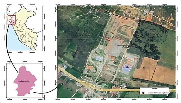 Fig. 1. Geographical location of the Cajamarca livestock processing centre. Iscoconga village centre, Cajamarca, Peru. Using ArcGIS (free version 10.8, Harvard, USA). Collection of parasitesAccording to the methodology described by (Abdolahi et al., 2016), parasites were washed five times with phosphate-buffered saline (PBS, pH 7.2) (Thermo Scientific™, USA) and transferred to 50 ml tubes (Falcon®, USA) containing PBS. Subsequently, they were transported at 37°C to the Laboratory of Biotechnology in Animal Health of the Baños del Inca Agrarian Experimental Station of the National Institute of Agrarian Innovation (INIA). Somatic protein extractionSomatic protein extraction was performed according to the protocol determined by Cabrera et al. (2020). 10, 20, 30, and 50 parasites were distributed in individual 2 ml microtubes (Eppendorf®, Germany) and preserved in an ice bucket. The microtubes were immersed in liquid nitrogen at −195°C for approximately 20 seconds, repeating this process three times. Subsequently, the microtubes were fragmented in a mortar, and the contents were crushed to a paste-like consistency. The paste was collected in new 2 ml microtubes (Eppendorf®, Germany), 1.5 ml PBS was added, and homogenised in a vortex (VWR®, Vortex Mini 230V, USA). Centrifuged at 14,000 g, 4°C, for 10 minutes (Eppendorf®, 5430 R, Germany), the supernatant was discarded, and the pellet was allowed to dry at room temperature. The pellet was then suspended in BugBuster Protein Extraction Reagent® (Novagen®, USA) according to the manufacturer’s specifications and incubated on a slow-shaking platform (Labnet International Inc, USA) for 20 minutes at room temperature. One mM phenylmethylsulfonyl fluoride (Sigma®, USA) was added as a protease inhibitor and incubated for 20 minutes at room temperature. Insoluble cell debris was removed by centrifugation at 16,000 g, 4°C, for 20 minutes. The supernatant was placed into a new 2 ml microtube (Eppendorf®, Germany). The protein was stored at −20°C for further analysis. Protein quantificationThe protein concentration of the somatic extracts was determined using the modified Bradford method (Bradford, 1976) with a NanoDrop™ 2000 spectrophotometer (Thermo Scientific, USA). The assay was performed using the Bio-Rad concentrated dye reagent (USA), according to the manufacturer’s instructions, and bovine serum albumin (BSA; Spinreact®, Spain) as the standard protein. The dye reagent was diluted at a 1:4 ratio, and 3–5 BSA dilutions within the linear range of the method (200, 300, 600, and 900 µg/ml) were prepared. Each dilution was mixed with the reagent and incubated for 5 minutes before measuring absorbance at 595 nm to construct the calibration curve (Fig. 2). The test samples were processed under the same conditions, and their absorbance was measured using the NanoDrop™ 2,000 to determine protein concentration.