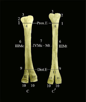 Fig. 3. (C) Dorsal view of the metacarpus, (Cʹ) Metatarsus of female.
