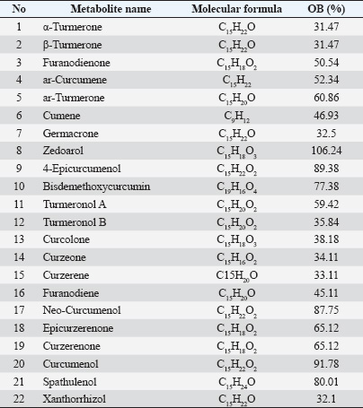 ABSTRACTBackground: Cisplatin-induced acute kidney injury (AKI) is a serious complication of cancer therapy. Natural compounds, such as those found in Curcuma species, may exert protective effects through anti-inflammatory and antioxidant mechanisms. Aim: This study investigated the therapeutic mechanisms of combined Curcuma longa and Curcuma zedoaria extracts against cisplatin-induced kidney damage using Ultra-High Performance Liquid Chromatography–High Resolution Mass Spectrometry (UHPLC-HRMS) and network pharmacology. Methods: An ethanolic extract was prepared and analyzed using UHPLC-Q-Orbitrap HRMS to identify active compounds. The antioxidant capacity was assessed using the Diphenyl-2-picryl-hydrazyl assay. Network pharmacology was used to predict compound-target interactions and identify key proteins involved in AKI pathways. Results: UHPLC-Q-Orbitrap HRMS analysis identified 40 bioactive compounds, among which 22 met the OB >30% threshold. Network analysis revealed 14 overlapping protein targets associated with AKI from 485 compound-related targets and 198 disease-related targets. Conclusion: This study demonstrated that key phytochemicals in C. longa and C. zedoaria may act on multiple protein targets implicated in AKI, highlighting their potential as multitarget therapeutics for kidney protection and future drug development. Keywords: Curcuma longa, Kidney damage, UHPLC-Q-Orbitrap HRMS, Network pharmacology, Zedoaria. IntroductionCurcuma longa (turmeric) and Curcuma zedoaria (zedoary) are widely used in traditional medicine across Asia, particularly in India, Indonesia, and China. These Curcuma species were selected for investigation based on their rich content of bioactive compounds, particularly curcumin, which possesses potent anti-inflammatory and antioxidant properties that are crucial for mitigating renal damage in acute kidney injury (AKI). The complementary phytochemical profiles of these species offer potential synergistic protection against cisplatin-induced nephrotoxicity (Kocaadam and Şanlier, 2017; Santana de Oliveira et al., 2020). These plants, which are members of the Zingiberaceae family, are rich in bioactive compounds and have shown therapeutic potential for various diseases. One such compound, curcumin, has gained attention in nephrology because of its potent antioxidant and anti-inflammatory activities, which are relevant in mitigating kidney injuries, such as AKI and chronic kidney disease (CKD) (Kocaadam and Şanlier, 2017; Santana de Oliveira et al., 2020; Gharge et al., 2021). AKI is a sudden condition characterized by a reduced glomerular filtration rate, which may progress to CKD. CKD involves persistent inflammation, fibrosis, and irreversible kidney damage (Sato et al., 2020). Inflammation and oxidative stress are key drivers of these pathological processes. Several studies have suggested that Curcuma-derived compounds alleviate nephrotoxicity by modulating key inflammatory mediators. The combination of C. longa and C. zedoaria has shown the potential to reduce cisplatin-induced kidney damage by suppressing the expression of TNF-α, kidney injury molecule (KIM)-1, and caspase-3 (Intan et al., 2025). Curcumin modulates multiple molecular targets, including cytokines, transcription factors, and signaling proteins. It inhibits proinflammatory cytokines, such as TNF-α and IL-1β, reduces macrophage infiltration, and interferes with fibrosis pathways by downregulating TGF-β (Jacob et al., 2013; Ghosh et al., 2014; Sadeghian et al., 2023). The identification of specific biomarkers has significantly advanced the early detection and management of kidney disease. As shown in recent research, a single intraperitoneal dose of cisplatin (10 mg/kg body weight) was used to develop a specific and sensitive model for the early identification of renal damage in male albino rats (Jana et al., 2023). Among the various biomarkers, interleukin (IL)-18 has been identified as a key indicator of cisplatin-induced kidney injury, AKI, hemodialysis, inflammatory kidney disease, diabetic renal disease, and polycystic renal disease (Mitra et al., 2025). This finding aligns with the findings that urine KIM-1, IL-18, nephrin, neutrophil gelatinase-associated lipocalin (NGAL), and serum cystatin C (Cys C) levels were greatly increased on day 3 after cisplatin treatment, whereas blood urea nitrogen and serum creatinine levels remained normal. This study confirmed these findings by upregulating the mRNA expression of KIM-1, IL-18, Cys C, and NGAL and downregulating the expression of nephrin in kidney tissue at an initial stage, demonstrating that utilizing an array of kidney impairment indicators has emerged as an earlier, more effective, and more reliable technique to diagnose AKI when compared with the most sophisticated signs now available (Jana et al., 2023). Other phytochemicals, such as demethoxycurcumin (DMC) and bisdemethoxycurcumin (BDMC), terpenoids, and flavonoids, may also contribute synergistically to kidney protection, although their roles remain poorly understood. Despite the existing knowledge of individual bioactive components, the combined effect of C. longa and C. zedoaria and their specific mechanisms in kidney protection, particularly in the context of cisplatin-induced nephrotoxicity, are not well defined; thus, this study sought to fill this gap. In this study, UHPLC-Q-Orbitrap HRMS and network pharmacology approaches were used to identify the bioactive compounds present in a mixed extract of C. longa and C. zedoaria and to explore their therapeutic mechanisms against cisplatin-induced kidney damage. Through UHPLC-HRMS, phytochemical profiles were obtained, and network pharmacology was used to predict target proteins and biological pathways, revealing key interactions underlying nephroprotective effects (Hopkins, 2008). The novelty of this study lies in its integrative approach combining LC-HRMS and in silico network analysis to unravel how complex natura