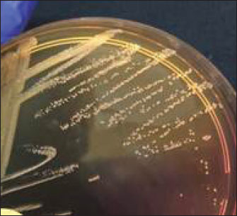 Fig. 1. Staphylococcus aureus colonies in the MSA.