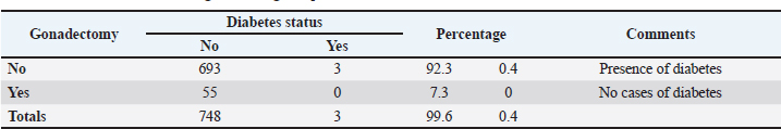 Table 6. Diabetic status of the dogs according to reproductive status.
