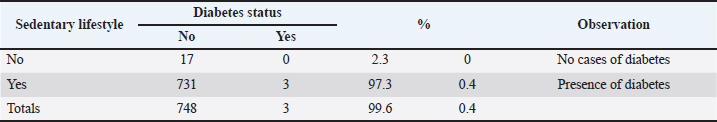 Table 11. Diabetic status of dogs according to sedentary lifestyle.