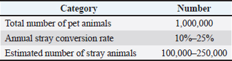 AbstractStray cats and dogs present serious challenges to public health, safety, animal welfare, and environmental balance in the Gulf region. This paper proposes a unified strategic framework that aligns with the shared climatic, cultural, and legislative characteristics of the Gulf Cooperation Council countries. Based on a proposed national plan, the document outlines the study's objectives, contributing factors to the phenomenon, estimated number of stray and homeless animals, expected stakeholders, targeted locations, control strategy, project timeline, required materials and supplies, estimated budget, workforce structure, operational system, animal monitoring methods, tracking mechanism, animal utilization (during life and post-mortem), success factors, and official regulatory forms. The strategy aims to establish an effective balance between population control and humane treatment in accordance with international veterinary and ethical standards. It proposes an integrated system involving monitoring, capture, sheltering, public awareness, and sustainable management solutions. Keywords: Stray animals, GCC, Animal welfare, Euthanasia, Regional strategy. IntroductionCats and dogs have accompanied humans for millennia, transitioning from wild species to domestic companions that became integral to daily life. However, neglect, abandonment, and unregulated breeding have contributed to the emergence of large free-roaming populations whose behaviors are often incompatible with urban and rural environments, posing significant risks to public safety, public health, and environmental stability. Stray animals—defined as unowned domestic dogs and cats—frequently live independently, reproduce unchecked, and may reach excessive numbers that generate nuisance and health concerns (Crowley et al., 2019; Sandøe et al., 2019). Globally, free-roaming dogs are believed to constitute the majority of the total dog population, estimated at roughly 700 million to 1 billion (WHO, 2013; WOAH, 2019). More recent evidence confirms that sterilization-based control efforts remain inconsistent, and outcomes vary across regions depending on implementation coverage, community participation, and policy enforcement (Hiby et al., 2023; Ho et al., 2024). In Bangkok, for instance, large-scale Capture–Neuter–Vaccinate–Return programs demonstrated reductions in free-roaming dogs, yet highlighted the limitations of partial implementation and the need for sustained coverage above 70% (Hiby et al., 2023; Thichumpa et al., 2025). These animals commonly suffer from malnutrition, infectious diseases, traffic injuries, and premature death, generating measurable impacts on communities and ecosystems (Fournier and Geller, 2004). They may also compete with native species, serve as reservoirs for zoonotic pathogens, or attract predators into residential areas (Jessup, 2004; Semiens, 2004). Given their high reproductive potential, accurate population estimation is difficult; a single fertile female and her offspring can produce dozens of juveniles in a short period, sustaining populations despite high mortality rates (Stoskopf and Nutter, 2004). Most reviews report reductions of approximately 60%–80% when comprehensive sterilization-based programs are implemented (Smith et al., 2019), though recent modeling confirms that populations rebound rapidly without long-term enforcement and public compliance (Thichumpa et al., 2025). The increasing frequency of human–animal encounters—particularly involving children—raises risks of injury, emotional trauma, and zoonotic transmission (Slater, 2001; Gerhold and Jessup, 2013). At the same time, public attitudes toward stray animals play a decisive role in determining the acceptance and success of management approaches, as demonstrated by a recent situational analysis in Australia (Rand et al., 2024). Addressing these challenges requires a sustainable, regionally adapted framework that integrates responsible ownership, public education, compulsory identification and registration, environmental management, and breeding control (WOAH, 2019). Importantly, such measures must be implemented within a robust legal system supported by multi-agency cooperation (Tasker, 2007) and tailored to the socio-cultural and environmental conditions of the Gulf Cooperation Council (GCC) Study objectivesThe objectives of this study are structured to address the multidimensional challenges posed by stray and homeless animals in the GCC countries. They are grouped into key domains to ensure clarity, focus, and measurable impact: Public health and safety• To reduce the number of stray and homeless animals in both urban and rural areas. • To limit the transmission of zoonotic and communicable diseases. • To reduce traffic accidents caused by stray animals crossing roads. • To minimize the risk of animal attacks, bites, or aggressive encounters—especially among children and vulnerable populations. • To replace harmful and unregulated practices (e.g., poisoning, shooting) with humane and scientifically validated control measures. Education and awareness• To enhance public knowledge through nationwide awareness campaigns promoting responsible ownership, vaccination, and sterilization. • To integrate animal welfare education into schools and public programs to foster empathy and responsibility among future generations. • To provide veterinary and medical students with structured, humane training opportunities in shelters and field programs. • To support and collaborate with animal welfare associations in advocacy, awareness, and community engagement. Infrastructure and governance• To establish sustainable sheltering facilities and infrastructure across the region for housing, treatment, and monitoring of stray animals. • To activate inter-governmental cooperation between municipalities, veterinary authorities, public health sectors, and law enforcement agencies. • To develop a unif