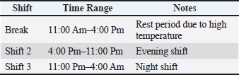 Table 5. Work schedule (Winter season).