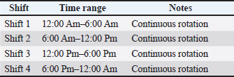 Most reviews report reductions of approximately 60%–80% when comprehensive sterilization-based programs are implemented (Smith et al., 2019). Work Schedule for the summer season can be seen in Table 4, and for winter season can be seen in Table 5. Table 4. Work schedule (Summer season).