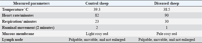 Table 2. Vital signs in apparently healthy sheep and sheep suffering from trace element deficiency.
