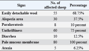 Fig. 5. Sheep suffering from steely wool. Table 3. Incidence of different clinical signs in sheep under investigation.