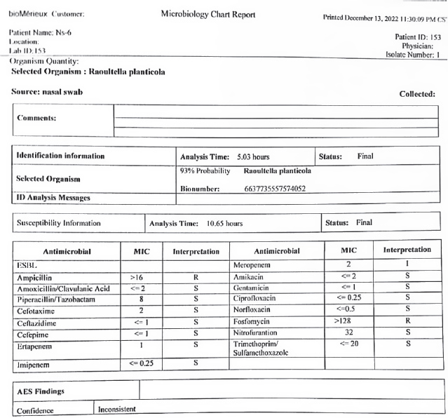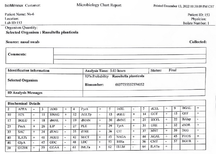 The current study demonstrated that Raoultella planticola exhibits mild pathogenicity when administered via the intranasal route in rabbits. The observed clinical signs (dullness, nasal and ocular discharge) and pathological findings (pulmonary emphysema) suggest that this bacterium can induce respiratory infection under experimental conditions. These et al findings align with Podschun (1998), who reported that Raoultella planticola is an environmental bacterium commonly found in water, soil, and plants, capable of colonizing humans and animals. The bacterium is a facultative anaerobic Gram-negative bacillus belonging to the Enterobacteriaceae family. It forms mucoid colonies on MacConkey agar due to polysaccharide capsule production (Figs. 1 and 2), making it morphologically and biochemically similar to Klebsiella spp. (Table 1).