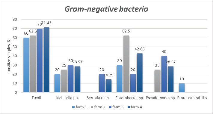 Fig. 1. Quantitative distribution of Gram-negative microorganisms isolated from Blatta orientalis across different pig farms.