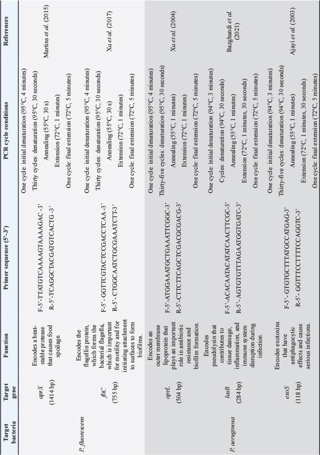 Table 1. Description of primers for the characterization of P. fluorescens and P. aeruginosa.