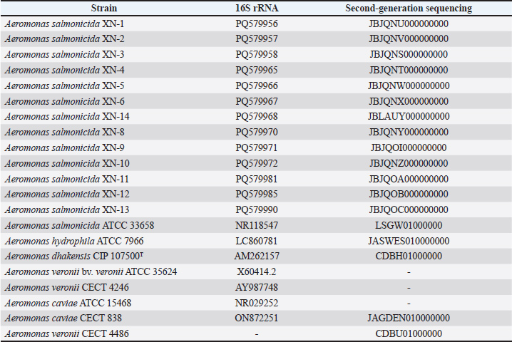 Open Vet. J.. 2025; 15(12): 6786-6800 Open Veterinary Journal, (2025), Vol. 15(12): 6786-6800 Research Article Aeromonas salmonicida isolated from pigs: Genomic and phenotypic antimicrobial resistance characterizationNuo Xu1 , Hannuo Li1, Xinyu Wang1, Hui Su1, Yuhang Zheng1, Wanli Sha1,2,3, Baishuang Yin1,2,4 and Wenlong Dong1,2,3*1College of Animal Science and Technology, Ji.3Lin Agricultural Science and Technology College, Jilin, China 2Jilin Provincial Key Laboratory of Preventive Veterinary Medicine, Jilin, China 3Jilin Province Technology Innovation Center of Pig Ecological Breeding and Disease Prevention and Control, Jilin, China 4Jilin Province Cross Regional Cooperation Technology Innovation Center of Porcine Main Disease Prevention and Control, Jilin, China *Corresponding Author: Wenlong Dong. College of Animal Science and Technology, JiLin Agricultural Science and Technology College, Jilin, China. Email: dongwenlong888 [at] jlnku.edu.cn Submitted: 11/08/2025 Revised: 11/11/2025 Accepted: 18/11/2025 Published: 31/12/2025 © 2025 Open Veterinary Journal