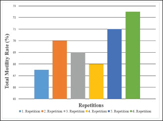 Fig. 3. Total motility percentages of Carrier pigeons for each repetition between May and October.