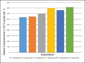 Fig. 4. Semen concentration values of Carrier pigeons for each repetition between May and October.