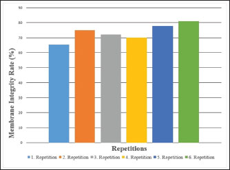 Fig. 5. Sperm membrane integrity percentages of Carrier pigeons for each repetition between May and October.
