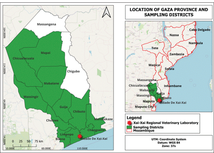 According to data released by the National Authorities, Gaza Province has the largest cattle herd in the country, with approximately 543,852 cattle (MADER - Ministério da Agricultura e Desenvolvimento Rural, 2021). Animal production in the province’s districts follows a traditional system and plays an important role in communities’ subsistence, where ruminant production is one of the main sources of wealth and livelihood for communities (Miambo et al., 2022).