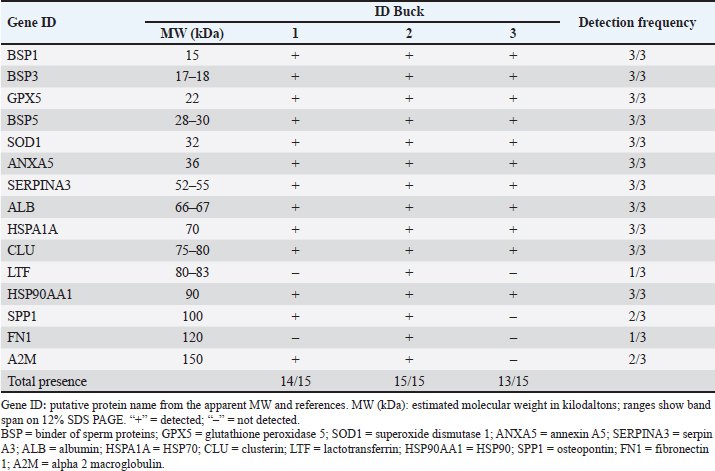 Table 2. Seminal plasma protein bands detected using 1D-SDS-PAGE in Saanen bucks.