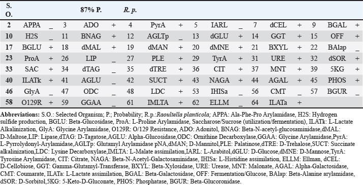 Fig. 4. Microscopical characteristics of R. planticola: short, straight, gram–negative rods arranged singly or in pairs under a light microscope (100×) Table 1. Biochemical results obtained using the VITEK® 2 system for R. planticola.