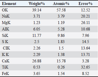 Table 4. Elementary EDAX analysis for chitosan nanoparticles.