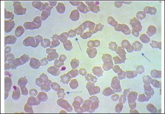 Fig. 1. Giemsa stain blood smear indicates equine RBCs infected with Mycoplasma haemofelis. 1000X.