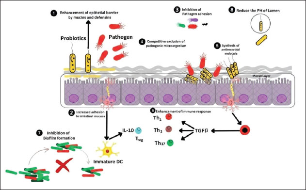 Fig. 5. Antibacterial mechanism of various probiotics against methicillin-resistant Staphylococcus aureus stain. MRSA controlOveruse of antibiotics in animals leads to the establishment of MRSA (Ramandinianto et al., 2020). According to public health concerns, MRSA infections require the collaboration of microbiologists, epidemiologists, veterinarians, and medical experts (Algammal et al., 2020). To tackle MRSA infections in animals, MRSA strains need to be investigated using PCR to identify the mecA gene (Vestergaard et al., 2019). Furthermore, environmentally friendly therapy regimens such as herbal medication, probiotics, and nanoparticles should be employed (Nandhini et al., 2022). Antimicrobial susceptibility testing should be used to determine the optimal treatment for MRSA infection, rather than the frequent and blind use of broad-spectrum antibiotics (Shoaib et al., 2023). To reduce the spread of MRSA in the community, veterinarians must take standard precautions such as good hygiene, infection control regimen, and environment disinfection. To reduce MRSA contamination in human food, good Hazard Analysis and Critical Control Point guidelines should be followed when handling and processing meat, milk, and dairy products. MRSA-infected animals must be isolated and treated, and MRSA-infected wounds must be cleaned and protected (Algammal et al., 2020). ConclusionThis review highlights the significant prevalence and multidrug resistance of methicillin-resistant MRSA in Pakistani livestock and companion animals. The findings underscore the zoonotic potential of MRSA, emphasizing its presence in bovine mastitis, raw milk, meat products, and companion animals. Key factors contributing to the emergence and spread of MRSA include poor hygiene practices, uncontrolled antibiotic use, and close human-animal interactions. The review also explores advanced diagnostic methods, including PCR and chromogenic media tests, and innovative treatment strategies, such as phytochemicals, bacteriophage therapy, nanoparticles, and probiotics, which offer promising alternatives to conventional antibiotics. AcknowledgmentsThis study received no funding from public agencies. Conflict of interestThe authors declare no conflicts of interest. FundingNone. Authors' contributionsAYK wrote the whole manuscript. AS and MHE supervised the study. MM added the references, edited and formatted the manuscript. All authors have read and approved the final version of the manuscript. Data availabilityAll data were provided in the manuscript. ReferencesAhmed, A., Ijaz, M., Khan, J.A. and Anjum, A.A. 2022. Molecular characterization and therapeutic insights into biofilm positive Staphylococcus aureus isolated from bovine subclinical mastitis. Pak. Vet. J. 42, 1–8. Akhtar, S., Shahzad, K., Mushtaq, S., Ali, I., Rafe, M.H. and Fazal-Ul-Karim, S.M. 2019. Antibacterial and antiviral potential of colloidal titanium dioxide (TiO2) nanoparticles suitable for biological applications. Mater. Res. Express. 6, 105409. Algammal, A.M., Hetta, H.F., Elkelish, A., Alkhalifah, D.H.H., Hozzein, W.N., Batiha, G.E.S., El Nahhas, N. and Mabrok, M.A. 2020. Methicillin-resistant Staphylococcus aureus (MRSA): one health perspective approach to the bacterium’s epidemiology, virulence factors, antibiotic resistance, and zoonotic impact. Infect. Drug. Resist. 13, 3255–3265. Ali, W., Zaman, S., Subhan, Z., Razaq, A., Nabi, M., Khattak, M., Naeem, N., Bangash, S.A. and Ullah, I. 2022. Methicillin-resistant Staphylococcus aureus (MRSA) epidemiology and antibiotics susceptibility profile isolated from different clinical samples in a tertiary care hospital. Pak. Biomed. J. 5, 108–112. Altaf, M. 2020. Molecular characterization of methicillin-resistant Staphylococcus aureus (MRSA) and associated risk factors with the occurrence of goat mastitis. Pak. Vet. J. 40, 19–24. Andrade, R.G.D., Ferreira, D., Veloso, S.R.S., Santos-Pereira, C., Castanheira, E.M.S., Côrte-Real, M. and Rodrigues, L.R. 2022. Synthesis and cytotoxicity assessment of citrate-coated calcium and manganese ferrite nanoparticles for magnetic hyperthermia. Pharmaceutics 14, 2694. Aqib, A.I., Ijaz, M., Anjum, A.A., Malik, M.A.R., Mehmood, K., Farooqi, S.H. and Hussain, K. 2017. Antibiotic susceptibilities and prevalence of methicillin-resistant Staphylococcus aureus (MRSA) isolated from bovine milk in Pakistan. Acta Trop. 176, 168–172. Araya, E., Hofner, P., Churchwell, E. and Kurtz, S. 2002. Arecibo observations of formaldehyde and radio recombination lines toward ultracompact H II regions. Astrophys. J. Suppl. Ser. 138, 63–72. Azam, M., Qureshi, T.M., Hussain, S., Aqib, A.I., Khan, S.R., Akram, K., Ijaz, M., Murtaza, M., Muneer, A. and Mahmood, S. 2023. Resistance modulation of Staphylococcus aureus isolates of dairy cattle through metallic oxide nanoparticles. Pak. J. Zool. 55, 2415–2423. Badua, A., Boonyayatra, S., Awaiwanont, N., Gaban, P. and Mingala, C. 2020. Antibiotic resistance and genotyping of mecA-positive methicillin-resistant Staphylococcus aureus (MRSA) from milk and nasal carriage of dairy water buffaloes (Bubalus bubalis) in the Philippines. J. Adv. Vet. Anim. Res. 7, 397–407. Bermudez-Brito, M., Plaza-Díaz, J., Muñoz-Quezada, S., Gómez-Llorente, C. and Gil, A. 2012. Probiotic mechanisms of action. Ann. Nutr. Metab. 61, 160–174. Bianchessi, L., De Bernardi, G., Vigorelli, M., Dall’Ara, P. and Turin, L. 2024. Bacteriophage therapy in companion and farm animals. Antibiotics 13, 294. Clay, T.B., Orwig, K.W., Stevens, R.A., Davis, E.P., Jennings, T.M., Long, T.E., Riley, B.L. and Hambuchen, M.D. 2021. Correlation of MRSA polymerase chain reaction (PCR) wound swab testing and wound cultures in skin and soft tissue infections. Diagnostic Microbiol. Infect. Dis. 100, 115389. Decline, V., Effendi, M.H., Rahmaniar, R.P., Yanestria, S.M. and Harijani, N. 2020. Profile of antibiotic-resistant and presence of methicillin-resistant Staphylococcus aureus from nasa