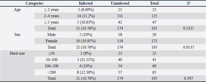 Table 3. Identification of OPA infection according to sheep age, gender, and herd size.