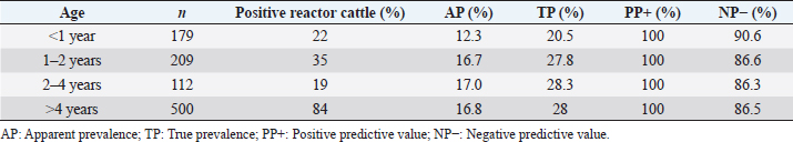 Table 2. PA and PR of leptospirosis by age in cattle from Sotaquirá, Boyacá.