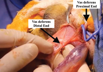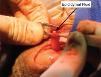 Fig. 4. Outflow of whitish consistency fluid from the epididymal end of the vas.
