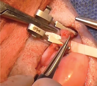 Fig. 1. Vasectomy reversal surgery performed in a captive lion (P. leo). Vasectomy site was accessed through the previous scar localized in the lower groin under the level of the external inguinal ring.