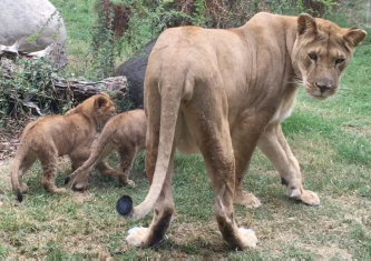 Fig. 7. Female lion cubs born after vasectomy reversal. Data on vasectomy and continued fertility in animals are extremely scarce, although in humans, this subject has been extensively reported and discussed. For previously vasectomized men who desire fertility, two options are available: vasectomy reversal or sperm retrieval plus intracytoplasmic sperm injection (ICSI). In men with less than 10 years of vasectomy and couples younger than 39-years-old, vasectomy reversal constitutes the first option, with high patency and pregnancy rates, as reported in the literature (Gerrard et al., 2007; Grober et al., 2014). In men with more than 10 years since vasectomy and in reproductively older couples (>39-years-old), or partners who are unable to achieve spontaneous pregnancy irrespective of their age (i.e., bilateral tubal obstruction or premature ovarian failure), sperm retrieval associated with ICSI appears to be a competitive alternative to vasectomy reversal (Hinz et al., 2008; Shridharani and Sandlow, 2010). In the first scenario, previous analyses demonstrate that vasectomy reversal is more cost-effective than ICSI to achieve a pregnancy (Pavlovich and Schlegel, 1997). Based on this evidence, and considering the fact that ICSI was deemed to be more complicated, riskier, and more expensive, vasectomy reversal was considered the first option. After an extensive literature review of scientific journals and books, we found that vasectomy reversal had not been described in lions; however, it was reported in other zoo animals as previously reported (Silber et al., 2013). In bush dogs, chimpanzees, and gorillas, the animals had an open-ended vasectomy, a technique used in humans to render the procedure more easily reversible. This technique leaves the distal (testicular) end open to allow leakage, decreasing the epididymal intraluminal pressure, which is preferable to epididymal physiology and reversal than complete obstruction. This approach is associated with >90% reversal success in a large series of >4,000 humans (Silber et al., 2013). In Sika deer and Przewalski’s horse, and similar to the case reported herein, a traditional non open-ended vasectomy was performed, which slightly decreases its success; however, reversal success remains over 80% in humans with this type of vasectomy, so with experienced surgeons to revert both vasectomies techniques, we followed the initial surgical plan. As such, we used the scar as a guide to search for the vasectomy site, which was an excellent surgical approach. The anatomical structures were similar to those in humans; yet, we noticed that the vas deferens was smaller by approximately 20%, making the microsurgical anastomosis technically more difficult, and explaining why the surgical time was greater than the mean time to perform one side in humans (approximately 45 minutes). With the assistance of only surgical loupes, and a mean magnification of 2.5 to 6.0×, we suspect that anastomosis would have been extremely difficult or almost impossible. We recommend the use of a surgical microscope (magnification 20 to 25×), as it is done with humans. Although only one side could be reversed due to prolonged surgical time, the procedure was extremely successful for two reasons: first, motile sperm were observed in the vassal fluid, and second, during the microsurgical phase of surgery, we could see the epididymal fluid flow through the vas while performing the anastomosis. In humans, surgical success is determined by the presence of motile sperm in semen analyses during follow-up (Namekawa et al., 2018). In our case, patency could be demonstrated with a semen analysis by electroejaculation, requiring general anesthesia, or by the lion’s attempt to copulate with an artificial vagina. None of these options were available, therefore, allowing spontaneous pregnancy and monitoring was elected. Since the females had no other contact with males, besides our patient, pregnancy would corroborate a successful vasectomy reversal. In conclusion, vasectomy reversal constitutes a valid technique to resume fertility in previous vasectomized lions. As with humans, surgery should be performed by experienced microsurgeons, with the assistance of a surgical microscope and microsurgical instruments. AcknowledgmentsThe authors would like to acknowledge the expert assistance of the veterinary technicians of Buin Zoo during the surgical procedure and follow-up. Conflict of interestThe authors declare that there is no conflict of interest. Author contributionMarcelo Marconi and José Manuel de la Torre were contacted to perform surgery. Cristian Palma assisted in the surgery. Hector Gallegos and Evelyn Soto assisted in the draft of the manuscript and photo edition. Sebastián Celis, Camila de la Torre, Carolina Ortiz, Alberto Duarte, and Ignacio Idalsoaga assisted in all the surgical procedures and follow-up of the lion and cubs. ReferencesDickey, R.M., Pastuszak, A.W., Hakky, T.S., Chandrashekar, A., Ramasamy, R. and Lipshultz, L.I. 2015. The evolution of vasectomy reversal. Curr. Urol. Rep. 16, 40. Gerrard, E.R., Sandlow, J.I., Oster, R.A., Burns, J.R., Box, L.C. and Kolettis, P.N. 2007. Effect of female partner age on pregnancy rates after vasectomy reversal. Fertil. Steril. 87, 1340–1344. Grober, E.D., Karpman, E. and Fanipour, M. 2014. Vasectomy reversal outcomes among patients with vasal obstructive intervals greater than 10 years. Urology 83, 320–323. Hinz, S., Rais-Bahrami, S., Kempkensteffen, C., Weiske, W.H., Schrader, M. and Magheli, A. 2008. Fertility rates following vasectomy reversal: importance of age of the female partner. Urol. Int. 81, 416–420. Machen, G.L., Bird, E.T., Kavoussi, P.K. 2018. Analysis of urban versus rural vasectomy demographics: a multi-institutional, retrospective comparison. Transl. Androl. Urol. 7, 931–934. Miller, S.M., Bissett, A., Burger, A., Courtenay, B., Dickerson, T., Druce, D.J. and Zimmermann, D. 2013. Management of reintrodu