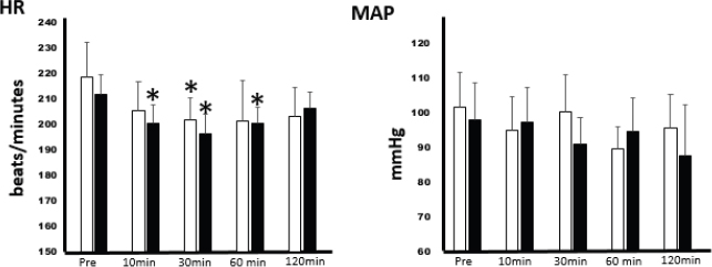 Fig. 1. Effects of timolol eye drops on HR and mean blood pressure.
