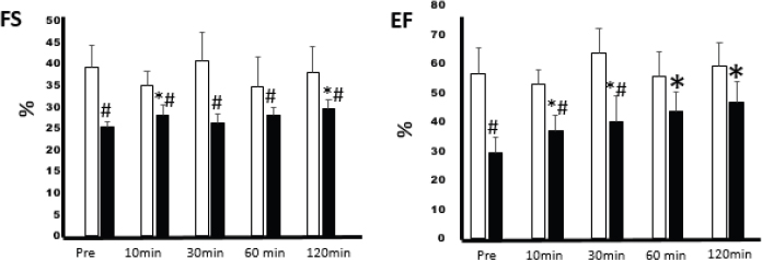 Fig. 2. Effects of timolol eye drops on echocardiographic parameters. AcknowledgmentThe authors would like to thank Editage (www.editage.com) for English language editing. Conflict of interestThe authors declare that there is no conflict of interest. FundingThis research did not receive any specific grant from funding agencies in the public, commercial, or not-for-profit sectors. Authors’ contributionMitsuhiro Isaka: principal investigator, study idea, study design, data analysis, and manuscript preparation; Tamashima Yumi, Reimi Hayashida, and Ryuji Araki: data collection and data analysis. ReferencesAbi-Samra, F. and Gutterman, D. 2016. Cardiac contractility modulation: a novel approach for the treatment of heart failure. Heart. Fail. Rev. 21, 645–660. Bartels, S.P., Roth, H.O., Jumblatt, M.M. and Neufeld, A.H. 1980. Pharmacological effects of topical timolol in the rabbit eye. Invest. Ophthalmol. Vis. Sci. 19, 1189–1197. Gunther-Harrington, C.T., Ontiveros, E.S., Hodge, T.E., Visser, L.C. and Stern, J.A. 2016. Effects of 0.5% timolol maleate ophthalmic solution on heart rate and selected echocardiographic indices in apparently healthy cats. J. Vet. Intern. Med. 30, 733–740. Hallman, B.E., Hauck, M.L., Williams, L.E., Hess, P.R. and Suter, S.E. 2019. Incidence and risk factors associated with development of clinical cardiotoxicity in dogs receiving doxorubicin. J. Vet. Intern. Med. 33, 783–791. Isaka, M., Hayashida, R., Tamashima, Y. and Araki, R. 2021. Surgical ventricular restoration for rabbit dilated cardiomyopathy model: preliminary study. Res. Vet. Sci. 136, 373–376. Januleviciene, I., Siaudvytyte, L., Diliene, V., Barsauskaite, R., Paulaviciute-Baikstiene, D., Siesky, B. and Harris, A. 2012. Comparison of intraocular pressure, blood pressure, ocular perfusion pressure and blood flow fluctuations during dorzolamide versus timolol add-on therapy in prostaglandin analogue treated glaucoma subjects. Pharmaceuticals (Basel). 5, 325–338. McCauley, S.R., Clark, S.D., Quest, B.W., Streeter, R.M. and Oxford, E.M. 2020. Review of canine dilated cardiomyopathy in the wake of diet-associated concerns. J. Anim. Sci. 98, 1–20. Merlet, N., Piriou, N., Rozec, B., Grabherr, A., Lauzier, B., Trochu, J.N. and Gauthier, C. 2013. Increased beta2-adrenoceptors in doxorubicin-induced cardiomyopathy in rats. PLoS. One. 8, 1–15. Mishra, D., Sinha, B.P. and Kumar, M.S. 2014. Comparing the efficacy of latanoprost (0.005%), bimatoprost (0.03%), travoprost (0.004%), and timolol (0.5%) in the treatment of primary open angle glaucoma. Korean J. Ophthalmol. 28, 399–407. Mitchell, E.B., Zehnder, A.M., Hsu, A. and Hawkins, M.G. 2008. Pimobendan: treatment of heart failure in small mammals. Proceed 29th Annu AAV Conf & Expo with AEMV, pp: 71–79. Oddone, F., Rossetti, L., Tanga, L., Berardo, F., Ferrazza, M., Michelessi, M., Roberti, G., Manni, G. and Centofanti, M. 2015. Effects of topical bimatoprost 0.01% and timolol 0.5% on circadian IOP, blood pressure and perfusion pressure in patients with glaucoma or ocular hypertension: a randomized, double masked, placebo-controlled clinical trial. PLoS. One. 10, 1–15. Orcutt, C. 2014. Cardiovascular disorders. In BSAVA Manual of Rabbit Medicine. Eds., Meredith, A., Lord, B, Quedgeley, UK: BASAVA, pp: 205–213. Redrobe, S. 2001. Imaging techniques in small mammals. Sem. Avian Exot. Pet. Med. 10, 187–197. Slenter, I.J.M., Djajadiningrat-Laanen, S.C., Elders, D.J., de Gee, R., Koele, L.E., Vermeer, L.W. and Boeve, M.H. 2020. The effects of topical dorzolamide 2% and brinzolamide1%, either alone or combined with timolol 0.5%, on intraocular pressure, pupil diameter, and heart rate in healthy cats. Vet. Opthalmol. 23, 16–24. Talavera, J., Giraldo, A., Fernández-Del-Palacio, M.J., Garcia-Nicolas, O., Seva, J., Brooks, G. and Moraleda, J.M. 2015. An upgrade on the rabbit model of anthracycline-induced cardiomyopathy: shorter protocol, reduced mortality, and higher incidence of overt dilated cardiomyopathy. Biomed. Res. Int. 8, 1–13. Varga, M. 2014. Cardiorespiratory disease. in: Textbook of Rabbit Medicine, 2nd ed. Edinburgh, UK: Butterworth-Heinemann, pp: 390–404. Watanabe, K., Ohta, Y., Nakazawa, M., Higuchi, H., Hasegawa, G., Naito, M., Fuse, K., Ito, M., Hirono, S., Tanabe, N., Hanawa, H., Kato, K., Kodama, M. and Aizawa, Y. 2000. Low-dose carvedilol inhibits progression of heart failure in rats with dilated cardiomyopathy. Br. J. Pharmacol. 130, 1489–1995. Wu, L., Zhang, Q., Shu, Q., Zhang, R. and Meng, Y. 2019. Sex-dependent changes in physical, mental, and quality of life outcomes in metoprolol-treated Chinese chronic heart failure patients. Medicine. 98, 1–8. | ||